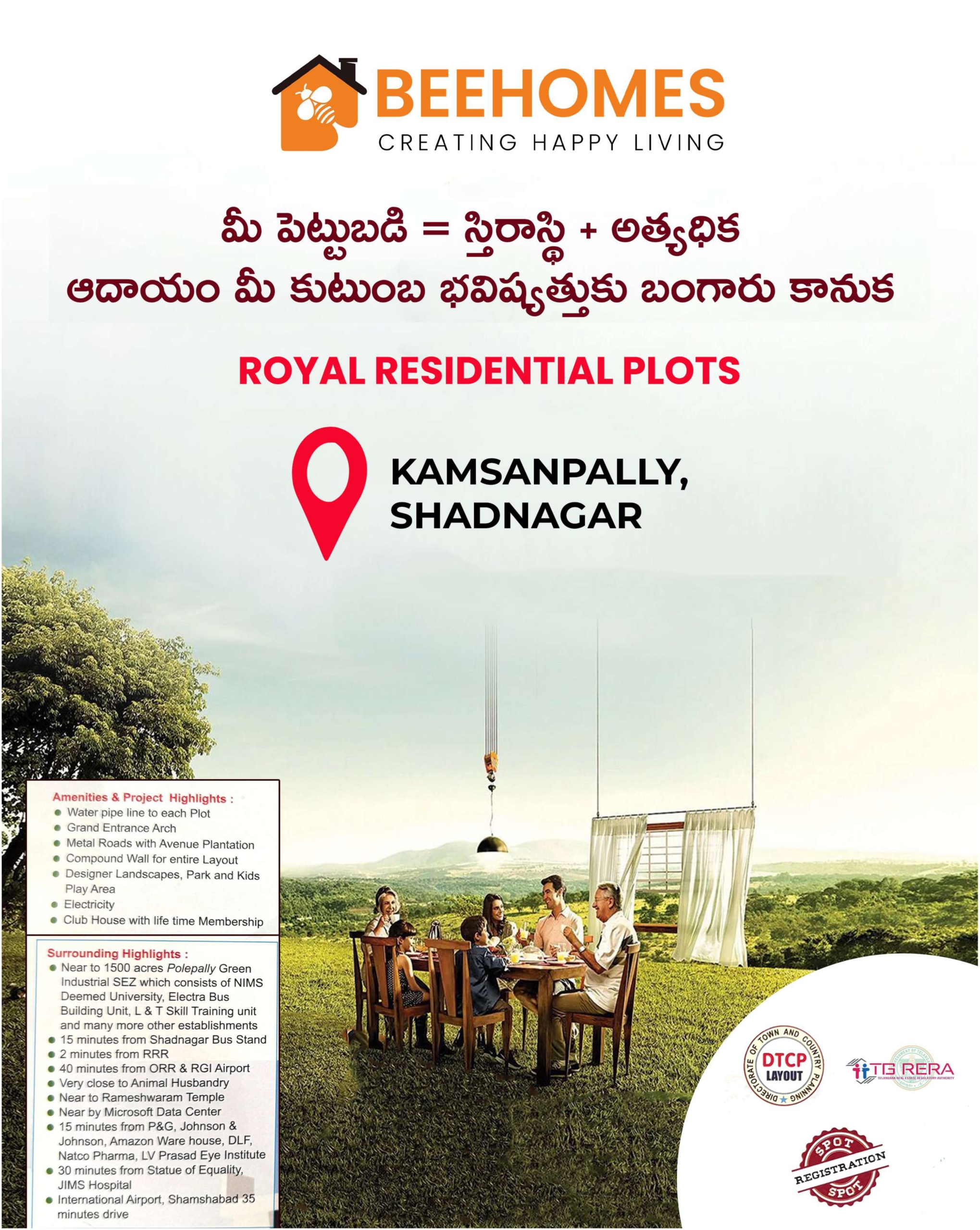 🌱 Why Choose BEEHOMES? BEEHOMES, with its motto “CREATING HAPPY LIVING,” is committed to delivering projects that are not just properties but foundations for a secure and prosperous future. With Royal Residential Plots, you are investing in a well-planned, legally compliant, and strategically located asset that promises both tranquility and excellent returns.